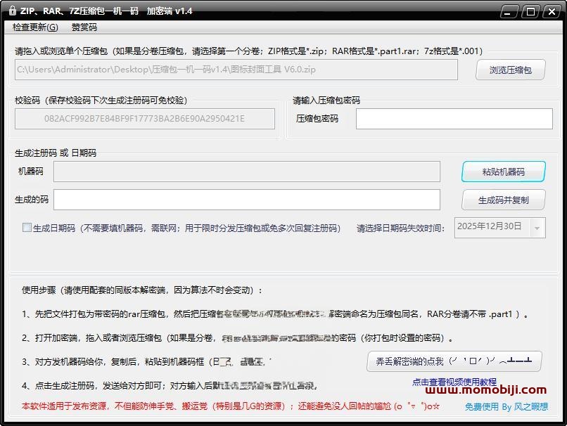 一机一码加密工具,支持RAR、ZIP、7z格式,有效防止资源/文件盗用!