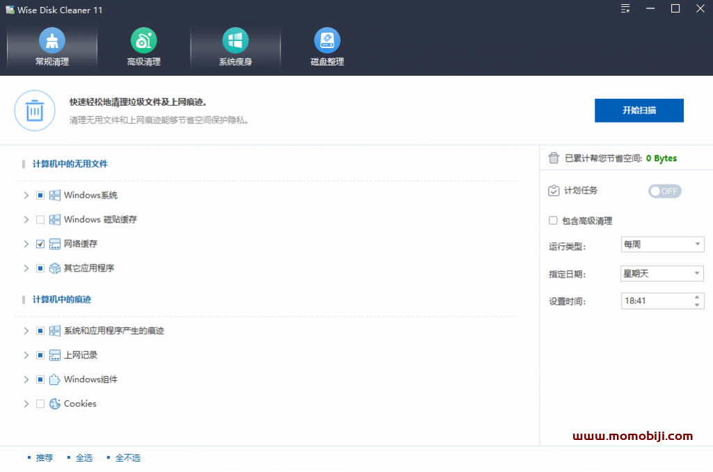 W.D.C 全名 Wise Disk Cleaner是一款超级的电脑垃圾文件清理工具,关键还是免费的,对于电脑C盘清理,嘎嘎有效‘;随着时间的推移,垃圾文件,临时文件,各种系统文件和其他您不需要的项目都积累在Windows计算机上。那些无用的文件占用宝贵的硬盘空间,并减慢您的计算机速度。 Wise Disk Cleaner可以删除硬盘上的这些不必要的文件,使计算机运行更快。