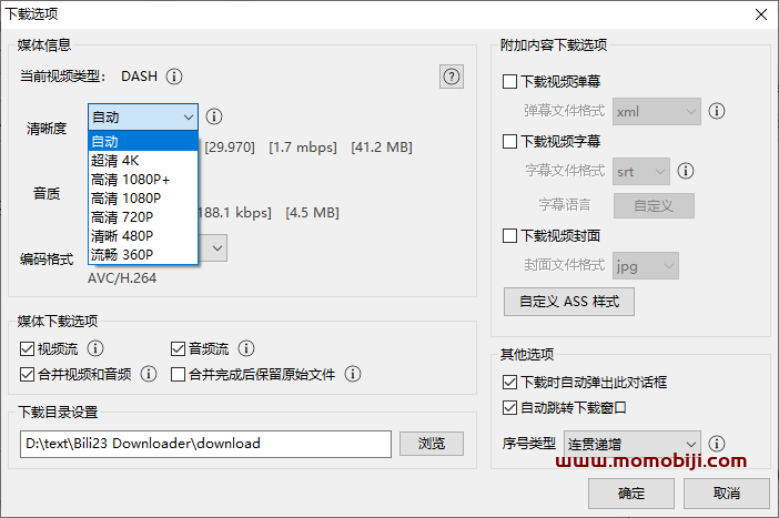 - 灵活的下载设置:清晰度、音质、弹幕、字幕,自定义你的专属配置